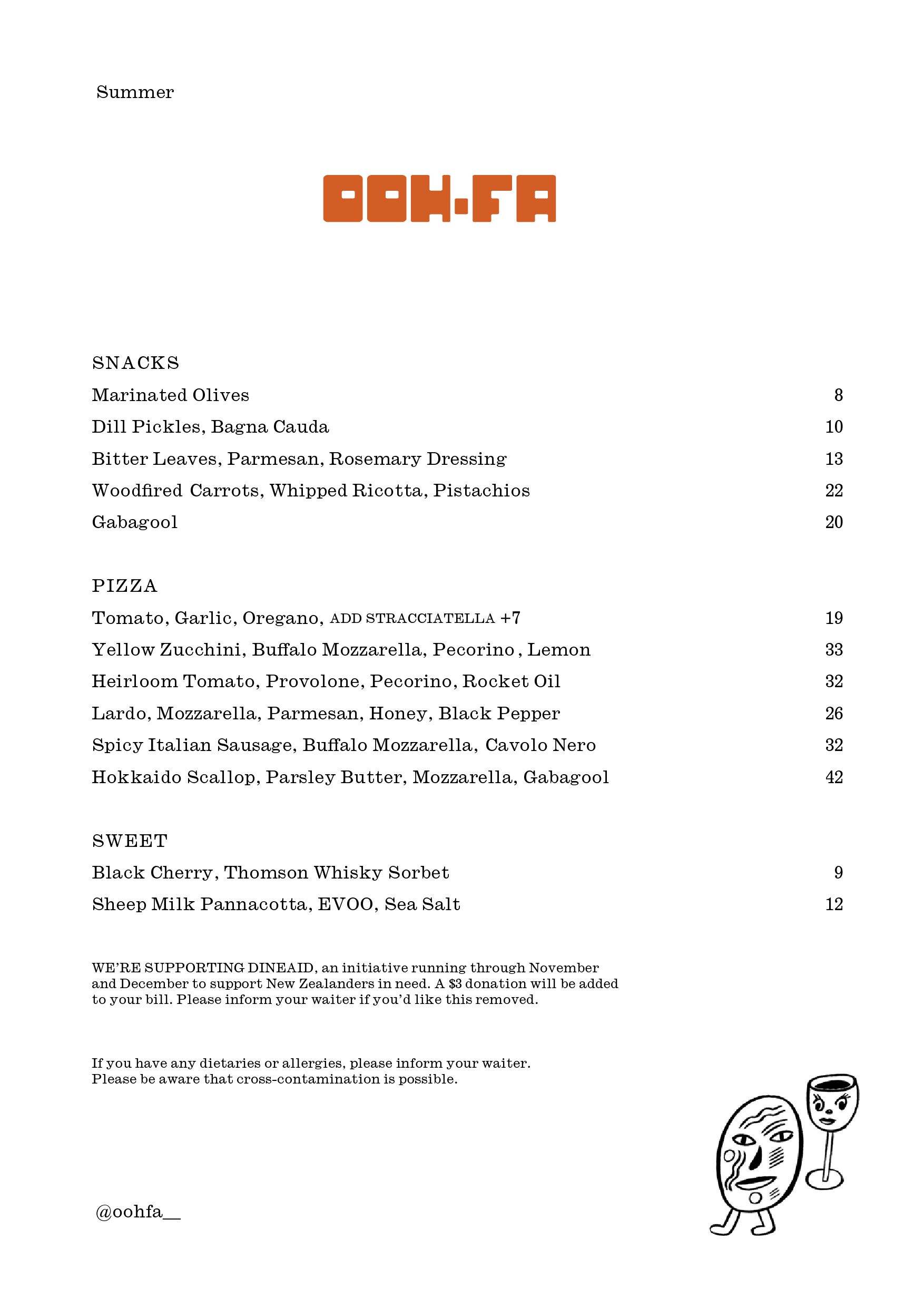 We cater to most dietaries. Please email hello@oohfa.co.nz ahead of time so we can make sure you're sorted.