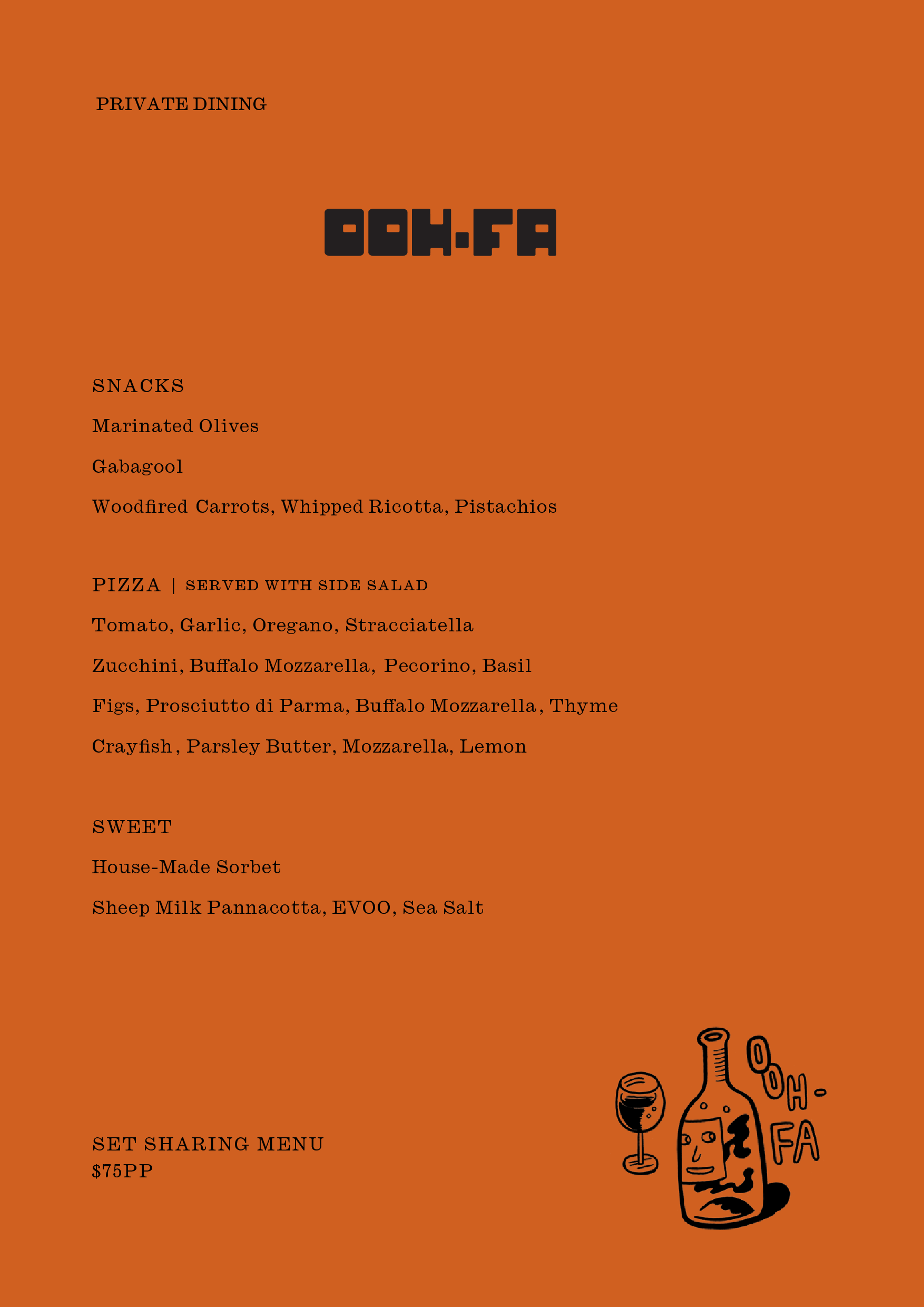Tucked away at the back of the restaurant, our private dining room seats 5–8 for an intimate experience. Choose your set menu, settle in — we’ll take care of the rest.